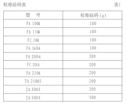 準(zhǔn)備好所需校準(zhǔn)砝碼(E 2、E 1級砝碼,見第8章),砝碼值見表1。