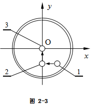 L2,使水準儀中的氣泡位于圓圈線的中央位置。具體調(diào)節(jié)方法是:旋轉(zhuǎn)調(diào)水平螺釘?shù)娜魏我粋€,先使水準儀的氣泡對x軸的坐標為零(如圖2-3中,氣泡從位置1→位置2),然后同時同步調(diào)節(jié)兩個調(diào)水平螺釘,使氣泡對y軸的坐標也為零(如圖2-3中,氣泡從位置2→位置3)。