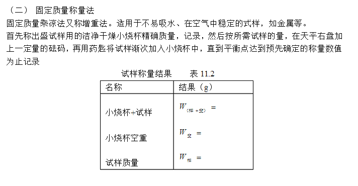 易于吸水、易于氧化或易于與CO2反應(yīng)的試樣,必須采用差減法。